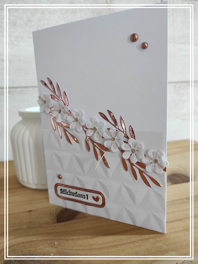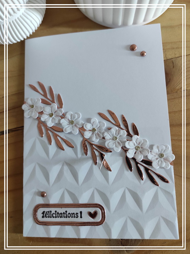 Message "félicitations !" tamponné en noir et embosser à chaud.